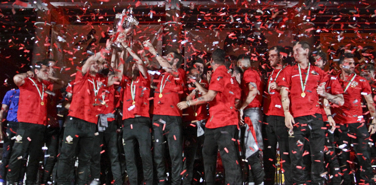Piazza Marconi colorata di grigio e rosso nella serata organizzata dalla US Cremonese e presentata da Eleonora Busi e Mauro Maffezzoni di Cremona 1, per festeggiare il ritorno in serie B. Una piazza gremita che ha salutato i giocatori neopromossi, alla presenza del cavaliere Giovanni Arvedi, dello staff dirigenziale e tecnico, a cominciare dal dg Stefano Giammarioli e dall’allenatore Attilio Tesser. Tra i saluti e gli interventi, quelli del sindaco Gianluca Galimberti, del presidente regionale del Coni Oreste Perri, del presidente di Lega Pro Gabriele Gravina. La città si è stretta ancora una volta – dopo i caroselli per la città di due settimane fa – attorno a questa squadra che ha coronato un sogno durato 11 anni.