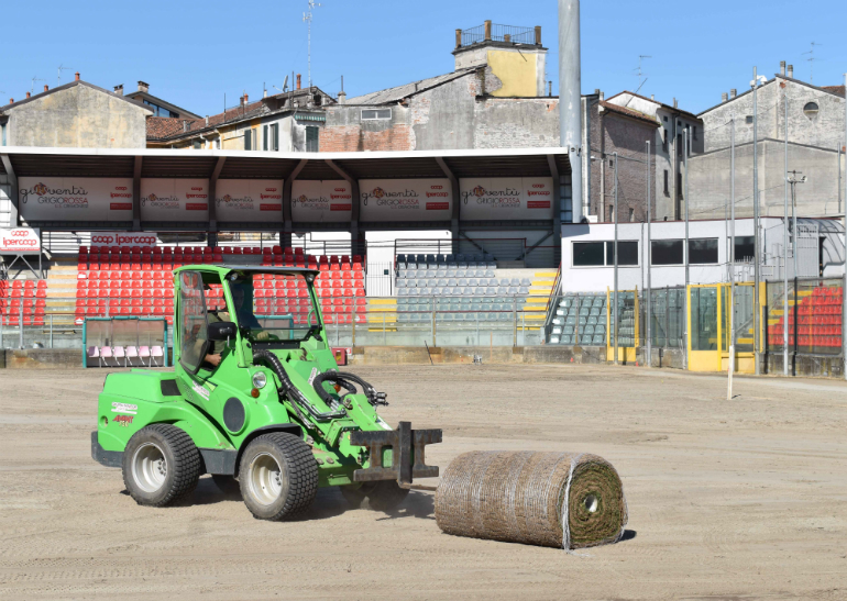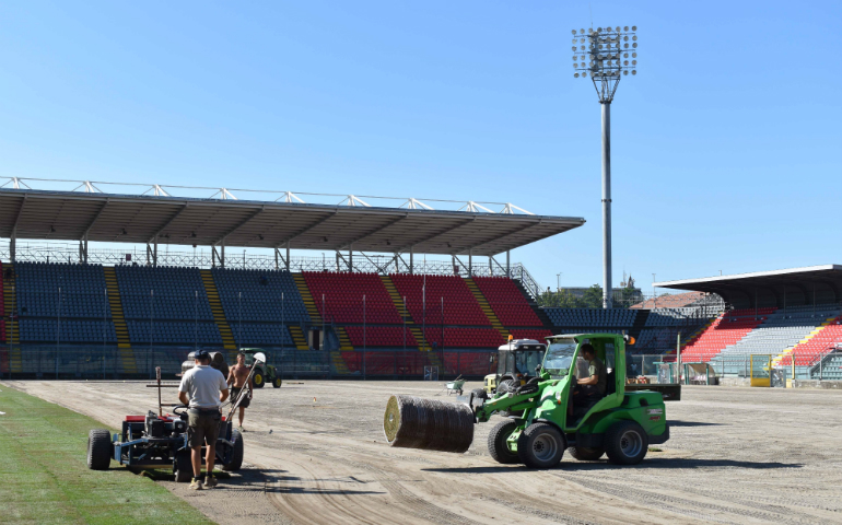 Allo Zini la posa del nuovo manto erboso in vista della Coppa Italia