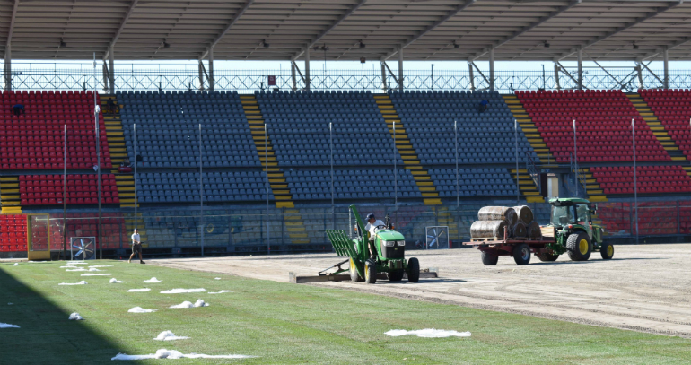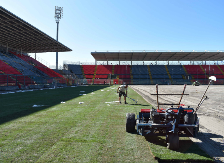Sempre più nel vivo i lavori allo ‘Zini’ in vista del primo impegno ufficiale della stagione che andrà in scena nello stadio cremonese l’11 agosto per il Secondo Turno di Coppa Italia. Dopo gli interventi sulle tribune, con la posa dei seggiolini e il conseguente aumento della capacità, è iniziata la posa del nuovo manto erboso che verrà calcato dai giocatori grigiorossi nella prossima stagione. Si tratta dell’ultimo step dei lavori annunciati dal club alla fine della passata stagione per ottemperare alle norme federali (per quanto riguarda le tribune, ndr), cui la Cremonese ha deciso di sommare il rinnovo del campo da gioco.