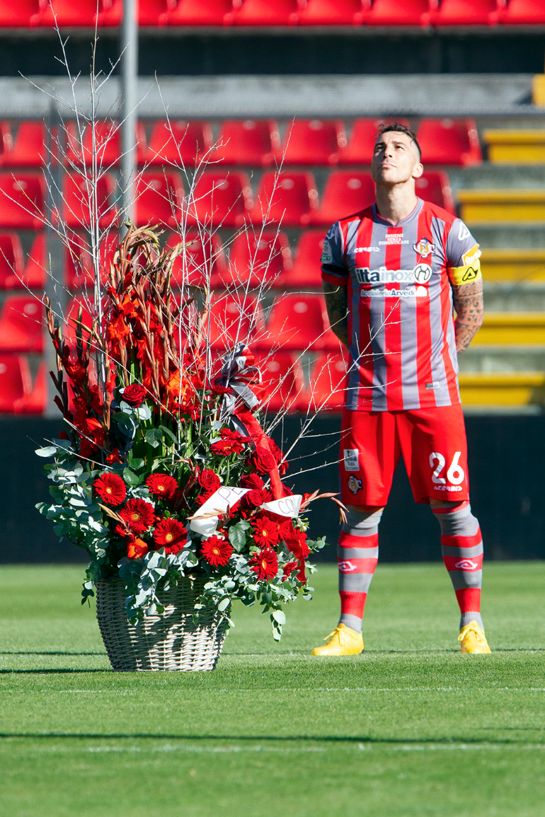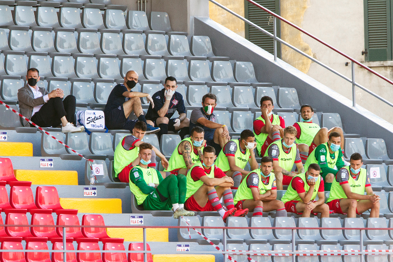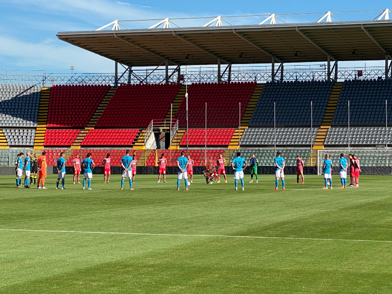 E’ la prima allo Zini di mister Pierpaolo Bisoli, in uno Zini purtroppo deserto, dove è ancora troppo presente il dolore per le tante vittime cremonesi del Covid. E proprio nel ricordo della sofferenza della nostra provincia la Cremonese indossa una maglia celebrativa che sarà messa in vendita su ebay per beneficenza. Dopo un toccante minuto di silenzio intorno ad una composizione di fiori grigiorossi, con la scritta “Per sempre con noi. U.S. Cremonese”, Luca Massimi di Termoli fischia l’inizio. Tante le novità in formazione a partire dal rientro di Kingsley a centrocampo al posto di Deli e in attacco Ceravolo e Gaetano per Ciofani e Palombi. Il primo brivido è per la Cremonese con Ravaglia che intercetta ma perde un pallone poi calciato da Improta. Risponde la Cremonese con una doppia occasione sugli sviluppi di una punizione calciata da Castagnetti dalla destra, ma sia Parigini che Ceravolo non imbroccano il corridoio giusto. Poco dopo è ancora Ceravolo che prova un assolo, entra in area ma Montipò fa buona guardia. La partita è gradevole e i ritmi buoni nonostante il gran caldo, ma Bisoli chiede di più e in particolare di sfruttare le doti di fantasia e velocità di Gaetano. Al 37’ una fiammata di Valzania che sfiora il palo alla destra di Montipò strappa applauso alla tribuna semideserta. Piccolo giallo per un’azione nell’area grigiorossa con gli ospiti che reclamano il rigore, ma il direttore di gara, che nel frattempo aveva perso il fischietto, ferma tutto e assegna il pallone alla Cremonese. Squadre negli spogliatoi sul risultato di 0-0.
