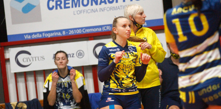 Finisce 3-1 per le tigri gialloblù ma dopo i primi due set, di marca nettamente cremonese, le giovanissime ospiti di coach Malinov mettono in campo grinta e determinazione riuscendo a strappare il 2-1. Nel quarto set le squadre combattono punto a punto ma è Cremona a tagliare per prima la linea del traguardo. Prossimo impegno per Pionelli e compagne la trasferta a Trescore Balneario contro Don Colleoni.