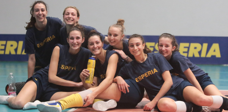 Coach Valeria Magri oppone alle cremasche la formazione tipo, ovvero Arcuri e Lodi in diagonale, Decordi e Pionelli in banda, Frugoni e Brandini al centro, Zampedri libero. Crema cerca di insidiare come può le sicurezze gialloblù, ma in ogni parziale, gestendo la situazione e mantenendo i nervi saldi, Esperia alla lunga prende il sopravvento in ogni periodo. Dopo i primi due set, entrano in campo Lydia Andreani al palleggio, Anna Melgari in attacco e Francesca Fiore al centro, brave a mettersi in mostra con buone giocate e tanta voglia. Coach Magri concede spazio ad Alice Martino, la schiacciatrice classe 2005 sovente aggregata con la prima squadra, abile a mettere a referto qualche punto in attacco e capace di prendere le misure in ricezione, al fianco di compagne esperte come Decordi e Zampedri.
