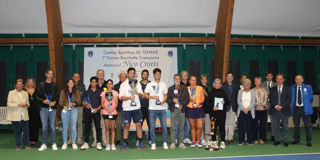 Al circolo Al Tennis di via Sinigaglia, si è conclusa ieri la prima edizione del Torneo Racchette Cremasche, dedicato alla memoria di Nico Crotti: per la categoria maschile, vittoria per Marco Baruzzi e per quella femminile, per la giovane Ashima Kumar, superando rispettivamente, Alberto Baruzzi e Rossella Zanesi. Numerosi gli altri premi assegnati, tra i quali, quello riservato al più giovane ed al veterano, Giovanni Riccardi e Vincenzo Codazzi.