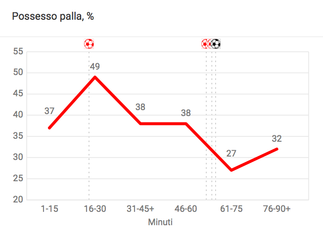 L’andamento del possesso palla della Cremonese (grafica Wyscout S.p.A.)