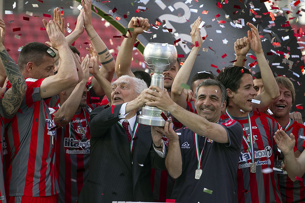 Il capitano Ciofani è stato l’ultimo ad entrare in campo ed ha alzato al cielo il trofeo che significa ritorno nella massima serie a distanza di 26 anni dall’ultima volta ed al Cavaliere Arvedi è stata consegnata la maglia della Serie A.