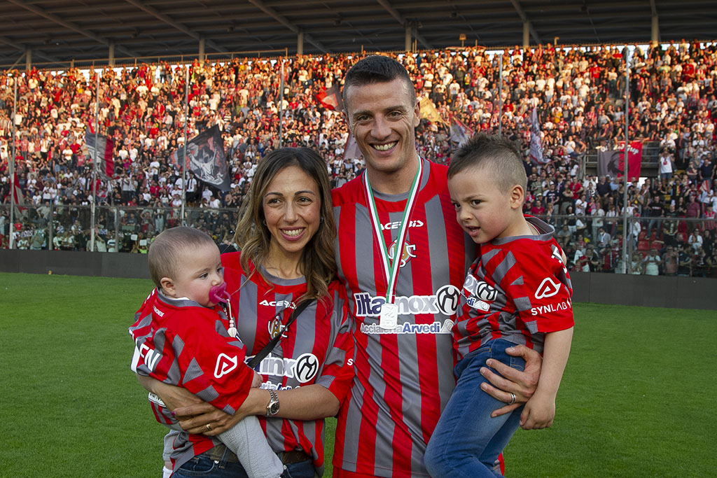 Al termine della premiazione tantissima emozione per i giocatori che hanno potuto accogliere sul perfetto manto erboso dello Zini i propri cari, rigorosamente vestiti in grigiorosso.