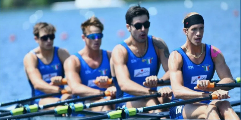 La gara forse più attesa era quella del quadruplo di Giacomo Gentili che vedeva il bissolatino delle Fiamme Gialle capovoga di una formazione inedita con l’inserimento di Gennaro Di Mauro e Luca Chiumento insieme ad Andrea Panizza, già compagno nell’avventura in Giappone. Il quattro di coppia azzurro prova subito a imporre il proprio ritmo agli avversar e fino a metà gara, poi si fa sotto la Romania che taglia per prima il traguardo, per gli azzurri il secondo posto vale comunque la semifinale.