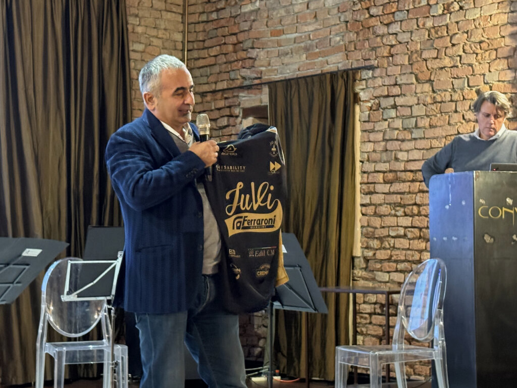 Dopo l’intermezzo musicale gli interventi di Maurizio Ferraroni che ha presentato le nuove maglie, che riportano anche il logo di Thisability e di “Io ci CRedo”, e del presidente Enrico che nell’occasione ha voluto ricordare e ringraziare la nuova generazione di Ferraroni, Tommaso, Matteo e Andrea che hanno organizzato la serata.