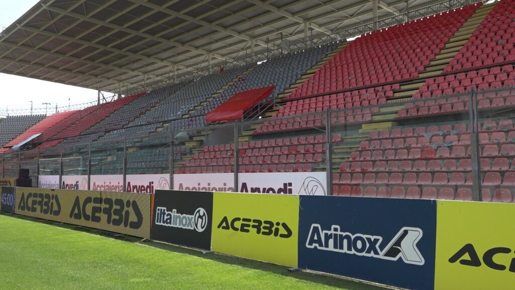 La quiete prima della tempesta. Siamo entrati allo stadio Zini a mezzogiorno, parecchie ore prima l’orario di apertura dei tornelli, previsto per le ore 18. E la calma è soltanto apparente. Fa impressione vedere tutti i settori vuoti, sapendo che soltanto poche ore dopo saranno gremiti in ogni ordine di posto, un pienone di quelli che si registrano solamente nelle grandi occasioni, come questa finalissima playoff che mette in palio un posto in Serie A.