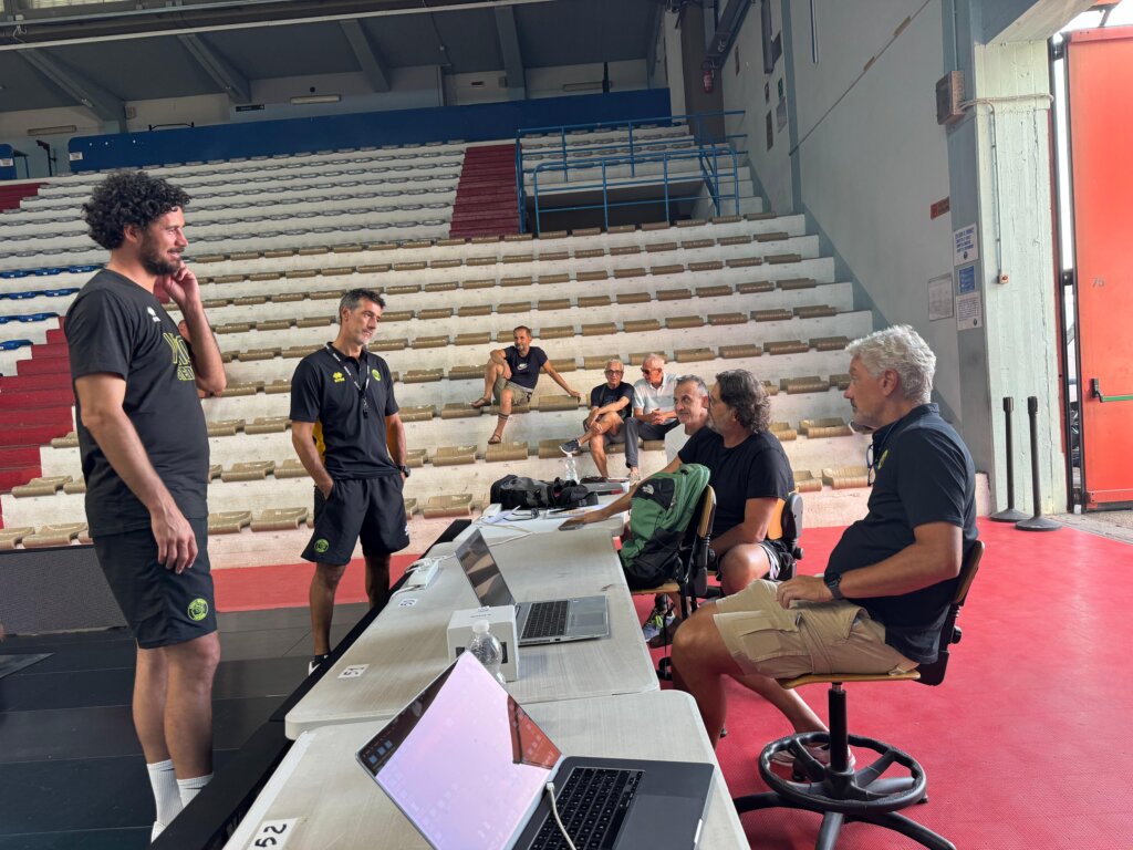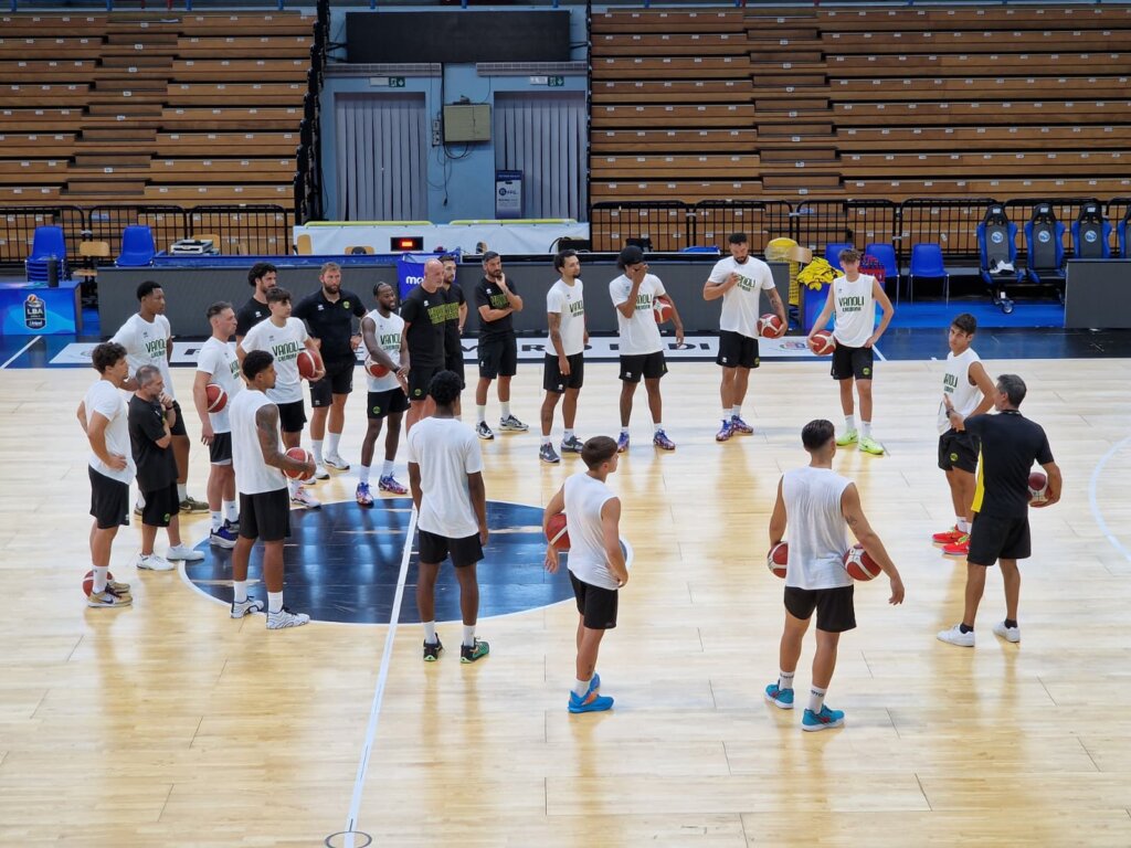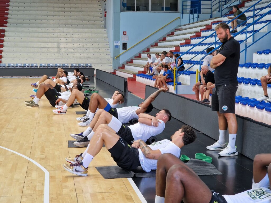 Prima di cominciare, al centro del campo, il General Manager Andrea Conti ha preso la parola per rivolgersi alla squadra: un messaggio chiaro, incentrato sull’importanza di costruire un gruppo unito, capace di affrontare insieme le difficoltà della stagione, con la rassicurazione che la società cercherà di mettere tutti nelle migliori condizioni per esprimere una pallacanestro di alto livello.