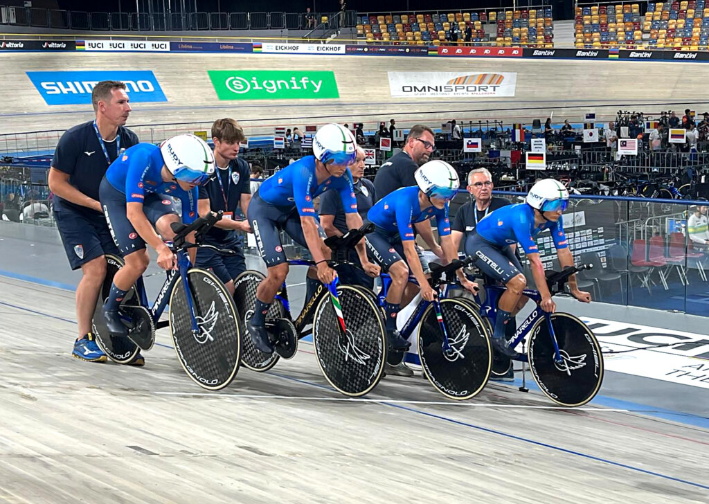 I rivali sono partiti forte, ma il sorpasso azzurro è già arrivato al primo chilometro, volando verso l’oro con il tempo di 3 minuti 54 secondi 562 viaggiando alla media di 61,391 chilometri orari e staccando gli avversari di 1 secondo e 438. Bronzo per la Germania che ha vinto la “finalina” contro gli Stati Uniti.