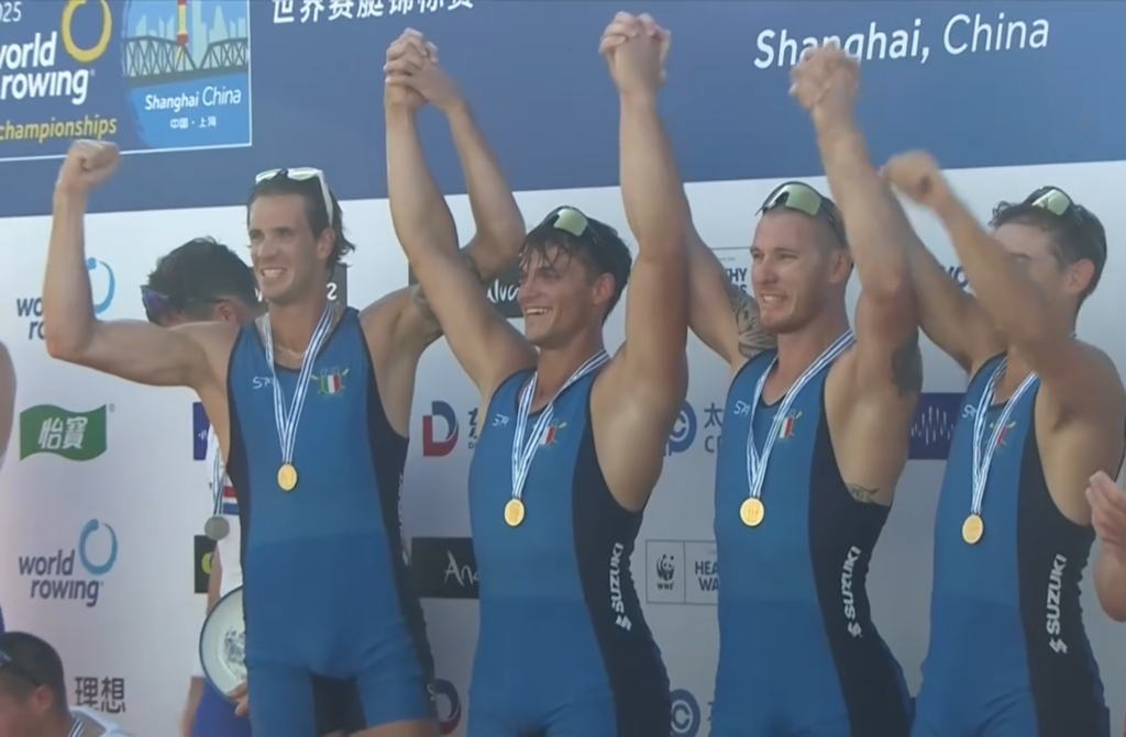 Sette anni dopo Plovdiv 2018, il quattro di coppia azzurro torna campione del mondo. A Shanghai Luca Chiumento, Luca Rambaldi, Andrea Panizza e il cremonese Giacomo Gentili hanno firmato un capolavoro che riporta l’Italia sul trono iridato della specialità, davanti a Gran Bretagna e Polonia.