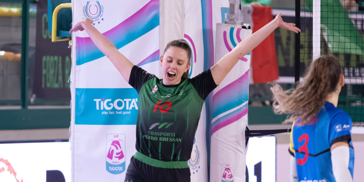 Nello scorso week end, la squadra di Leo Barbieri ha osservato il turno di riposo, con i risultati delle partite disputate che hanno accorciato ulteriormente la classifica dove il terz’ultimo posto è il riferimento per la salvezza (scendono in A3 le ultime tre). Attualmente le neroverdi sono quinte a quota 17 punti, a +1 sulla coppia Club Italia-Casalmaggiore, mentre più staccate sono Concorezzo (penultima a quota 12) e Modena (ultima con 5 punti). A fare il punto della situazione in casa Trasporti Bressan è la schiacciatrice classe 2004 Sara Bellia.